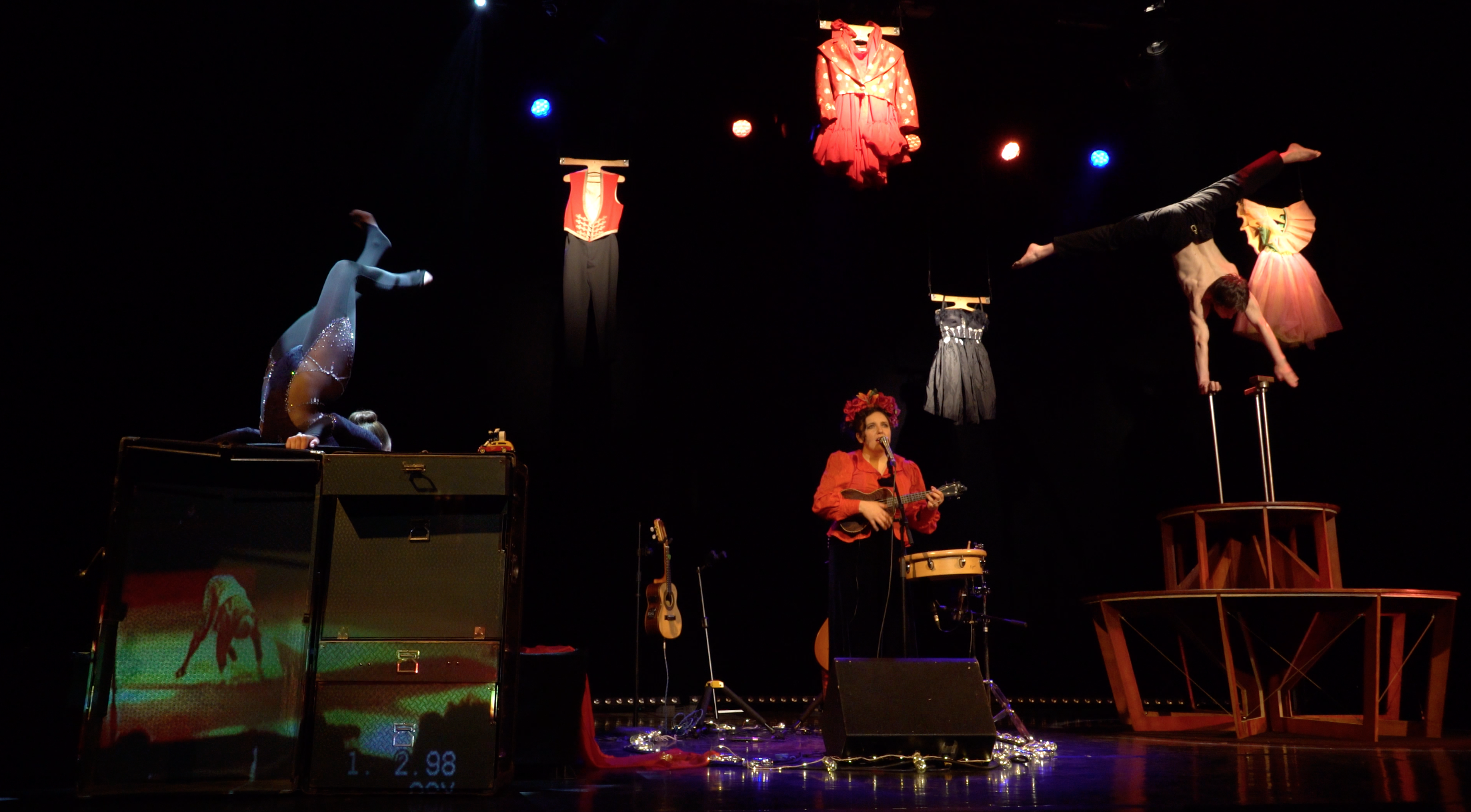 Nostalgique ? Peut-être. Magique ? Surement… avec la force de la magie pour faire apparaître ce qui n’était plus, pour réveiller ce qui était englouti. La musique enveloppe ces objets artisanaux du monde circassien dans une poésie qui ébahi, réveillant alors ces acrobates, monstres ancestraux qui travaillent au service du merveilleux. Ces ouvriers naviguent entre ciel et terre, et aussi aisément, entre rires et larmes. Ils sont réveillés d’un sommeil profond par ma voix, pour aussitôt plonger dans un second rêve: comme la mue du serpent qui révèle une seconde peau.